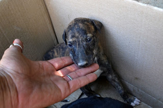 een arme moeder met haar 3 puppies. Ze zijn gered van een Galguero in